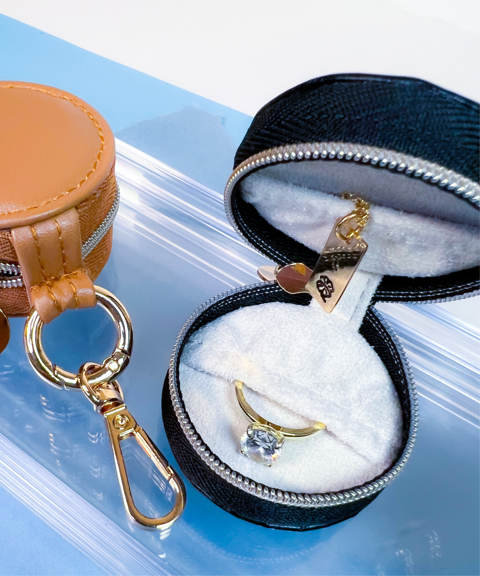 Mini joyero versión llavero de cuero sintético de 1.9 pulgadas